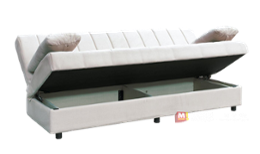 Практичната ракла под седалката осигурява скрито пространство за съхранение на завивки, възглавници и други вещи, като спомага за по-добра организация в дома. Диванът е изработен от висококачествени материали, гарантиращи издръжливост и комфорт при продължителна употреба.