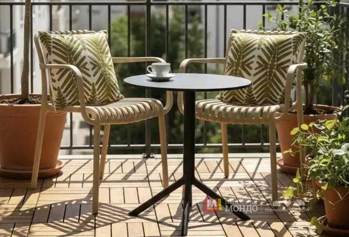 Столовете са изработени от висококачествен полипропилен с UV защита, което гарантира устойчивост на слънце, влага и температурни амплитуди. С размери 55/58/80 см, височина на сядане 45 см и дълбочина 42 см, те осигуряват удобна и ергономична позиция. Лекият им дизайн (6 кг) позволява лесно преместване, без компромис със стабилността. Масата с височина 75 см и здрава конструкция от полипропилен е практична, устойчива и лесна за поддръжка – перфектна като градинска маса за малки пространства.