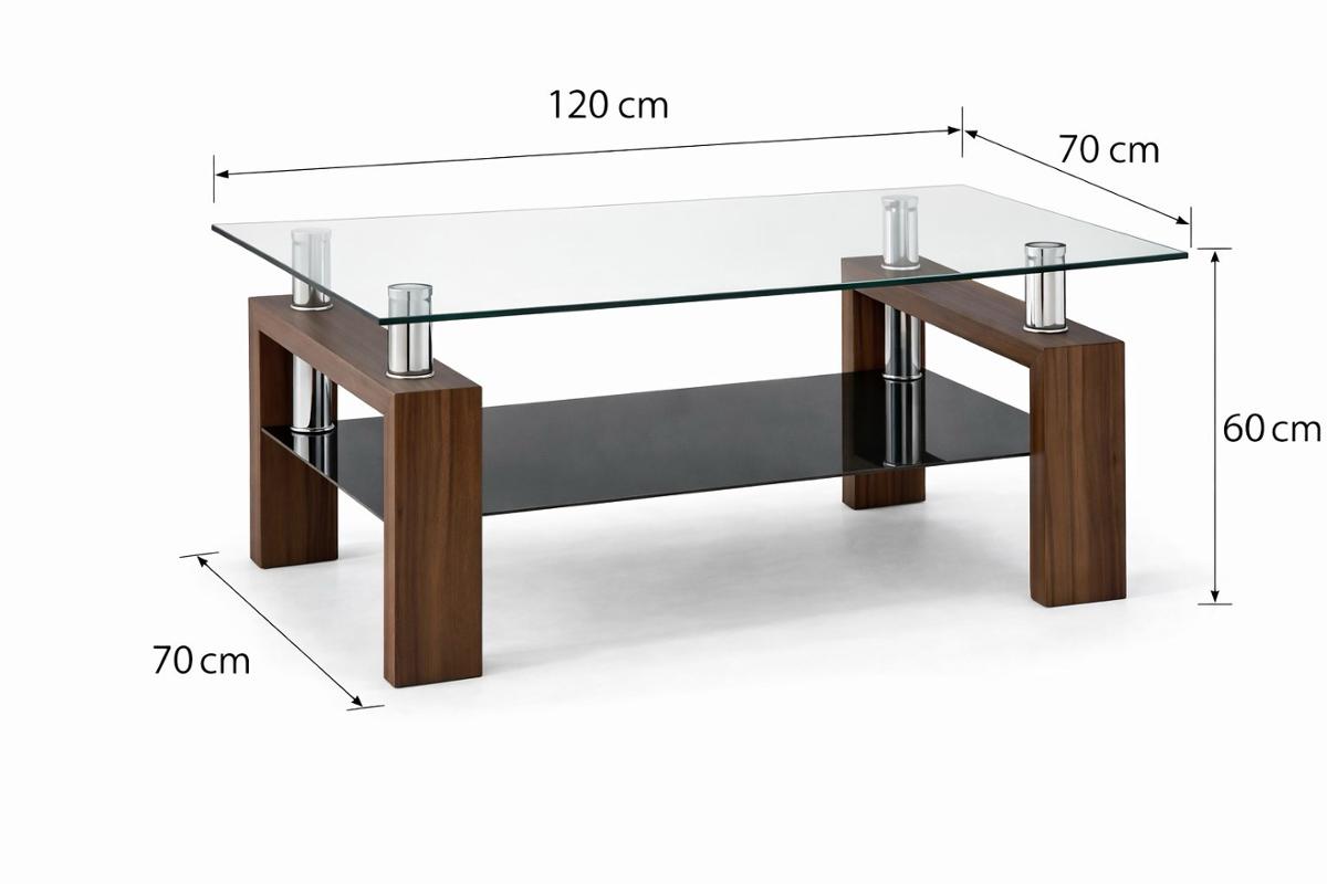 Функционална холна маса, с височина 60см, което я прави подходяща за дивани с по-висока седална част. Модерна визия и комбинация на цветове, а използваните материали са от високо качество-закалено стъкло и МДФ материал в цвят орех за краката.