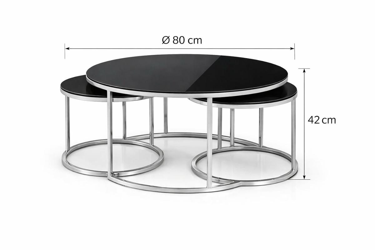 Комплект холни маси Елиса Силвър, черно стъкло