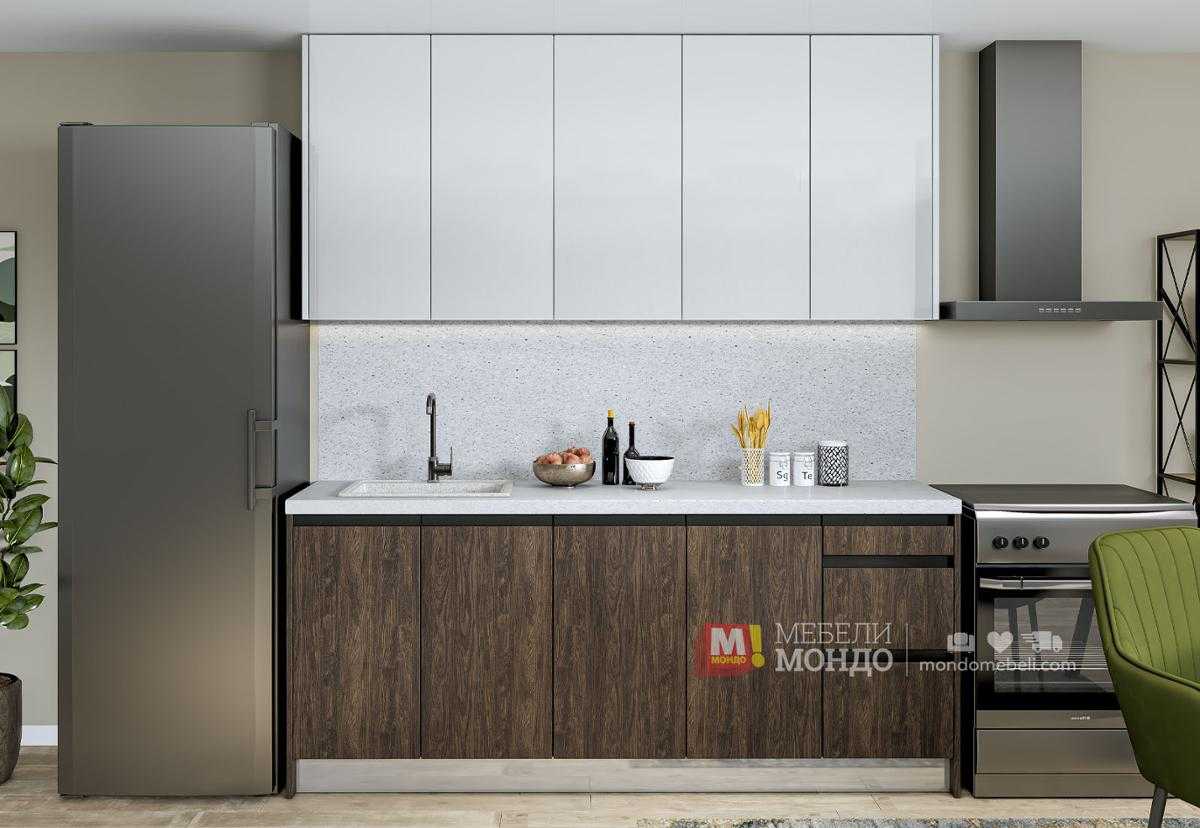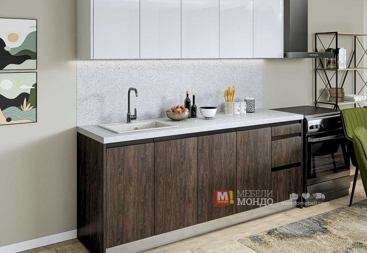 С ширина от 2метра, кухнята е идеална както за по-малки, така и за средно големи пространства. Горният ред (92см височина, 32см дълбочина) осигурява достатъчно място за съхранение, а долният ред (90см височина, 60см дълбочина) е проектиран за удобно и практично ползване.