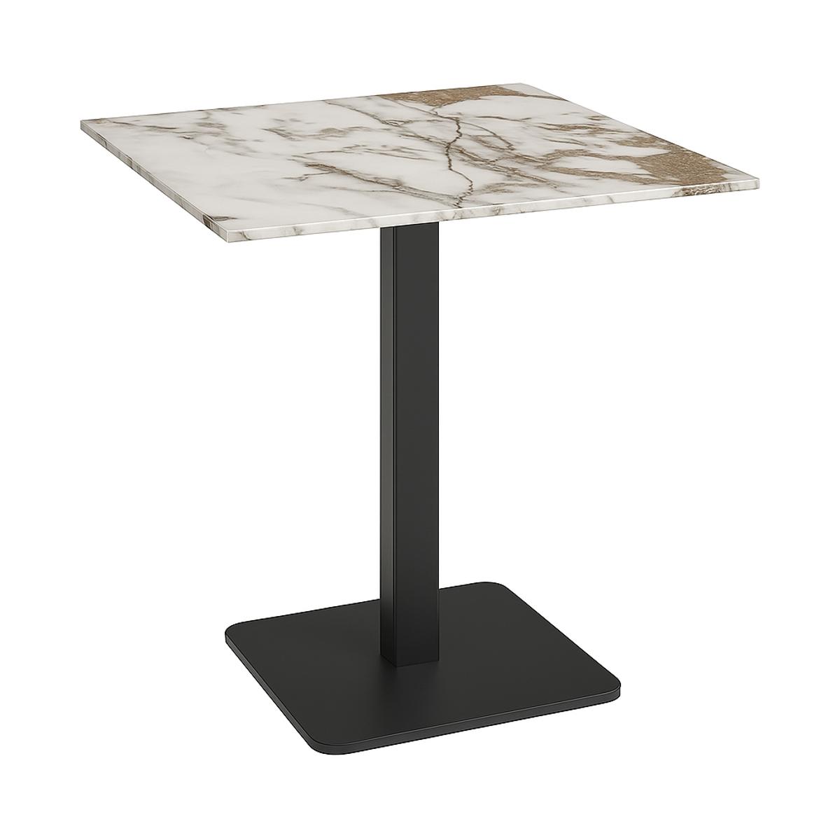 Съчетание между естествена красота и индустриален минимализъм, тази квадратна маса с плот изработен от синтерован камък е идеален избор за модерни интериори. Плотът е изработен от синтерован камък с изразен мраморен отенък на бяла основа, сиво, черно и златно – придава лукс и уникалност на всяко пространство. Масивната метална основа в цвят черен осигурява стабилност и контрастира по изящен начин с повърхността на плота. Тази маса не е просто мебел – тя е скулптура. Подходяща за хора с вкус към изисканите детайли и търсещи естествени материали с характер.