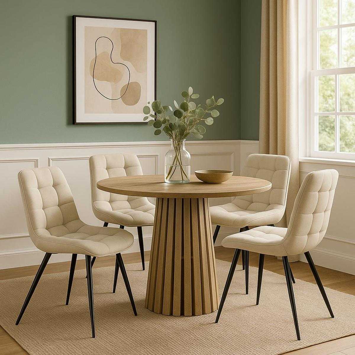 Изборът на бежов цвят го прави универсален – подходящ както за модерен градски интериор, така и за по-класически уютен дом. Перфектен за трапезарията, хола или елегантно кафе.
