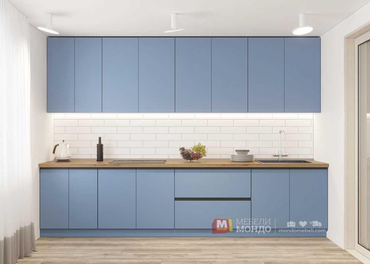 Модулна кухня Софи в цвят студено синьо е създадена за хора, които търсят модерна визия, изчистени линии и хармония в своя дом. Нежният студено син тон на фронтовете носи усещане за спокойствие и свежест, като същевременно придава стил и индивидуалност на интериора. В комбинация с топлия дървесен плот и изчистения гръб в бяло, кухнята излъчва балансирана елегантност, която превръща ежедневното готвене в истинско удоволствие.