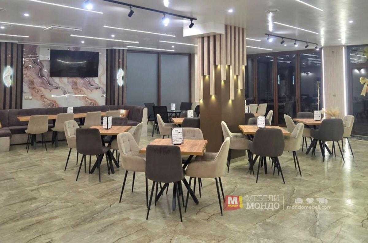 Този тип обзавеждане за ресторант и заведение е инвестиция в дългосрочна експлоатация и представителна визия. В MЕБЕЛИ МОНДО предлагаме професионални решения за бизнес клиенти, налични в нашите магазини в страната и онлайн, с гарантирано качество и индивидуален подход към всеки проект.