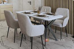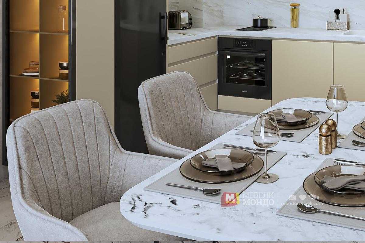 Изберете комплект „Загреб“, защото съчетава стил, практичност и дълготрайно качество. Разтегателната маса с елегантен мраморен гланц не само впечатлява визуално, но и лесно се адаптира към повече гости – разтяга се от 130 до 160 см. Четирите удобни трапезни стола с мека бежова дамаска и стабилни метални крака осигуряват комфорт и модерен акцент във Вашата трапезария. Това е перфектен избор за всеки, който търси функционално решение с изискан дизайн. А с гаранцията за качество и отличното обслужване от МЕБЕЛИ MONDO, инвестирате в уют и сигурност за Вашия дом.