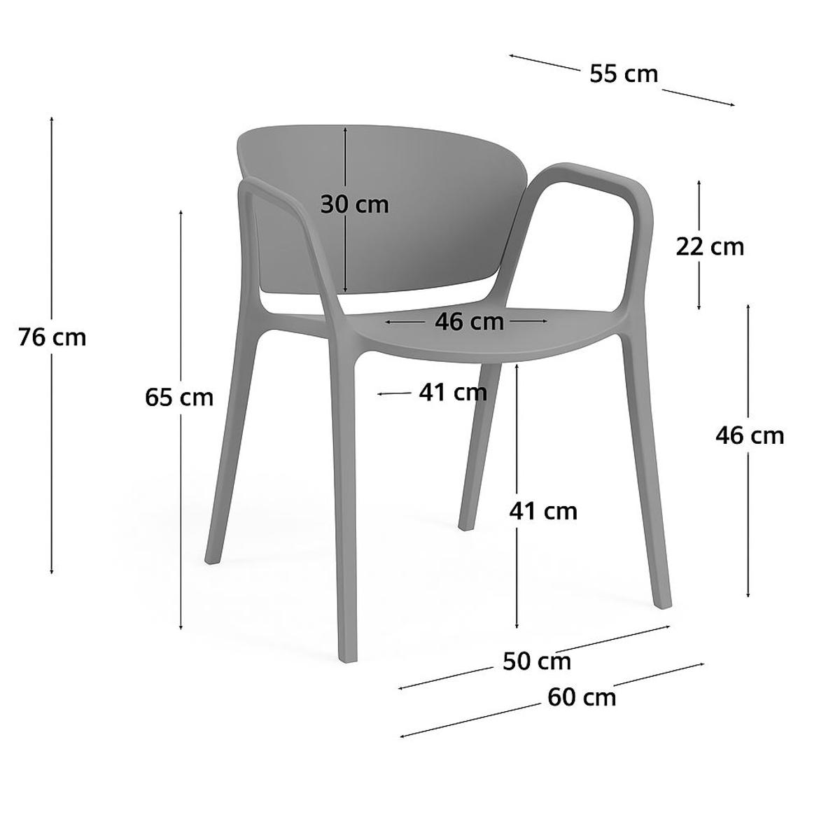 Комфорт и ергономия – с широка седалка и подлакътници, дълбочина 46 см и височина на сядане 41 см, този пластмасов стол с подлакътници предлага максимално удобство.