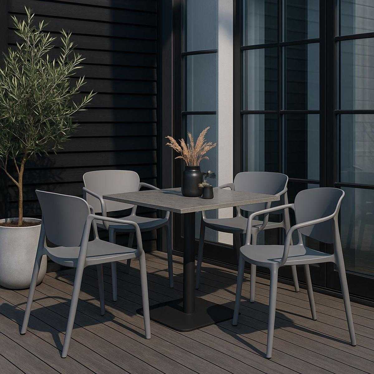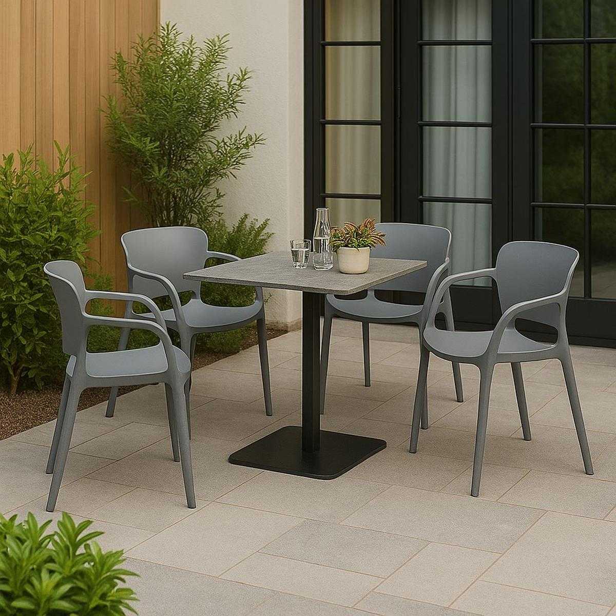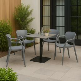 Издръжлив полипропилен – материалът е лек, но устойчив на атмосферни влияния, което прави стола идеален за двор, тераса, балкон или заведение на открито.