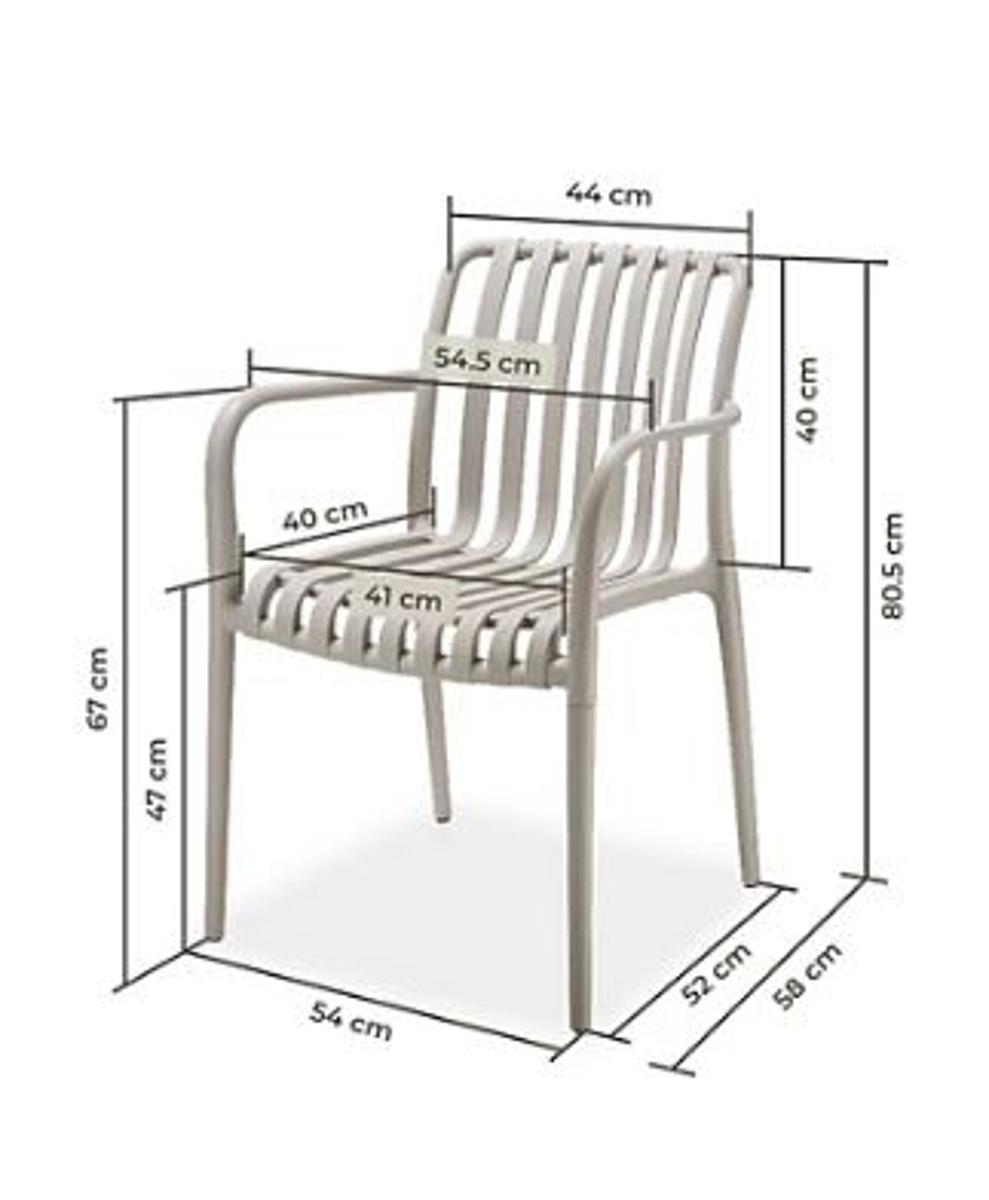 Изработен от устойчив полипропилен, стол Исабел не просто краси пространството, той го допълва. Широк 55 см и дълбок 58 см, с височина от 80 см, той създава усещане за стабилност и сигурност. Седалката е на височина 45 см, ергономично оформена и с дълбочина 42 см – за да прегърне тялото ти с лекота и подкрепа.