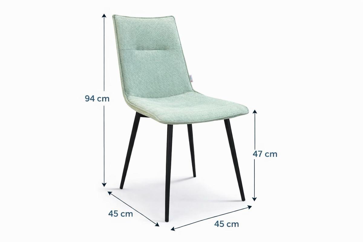Дизайнът е изчистен и модерен, което го прави изключително адаптивен. Комбинацията от текстил в успокояващ цвят (като актуалната мента) и фините черни метални крака придава на помещението усещане за простор и изтънченост. Той се вписва перфектно както в индустриален, така и в класически или скандинавски тип интериор.