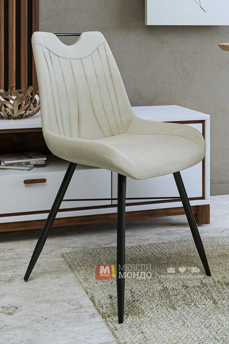 Подплатената седалка съчетава комфорт с устойчивост, а леко извитата облегалка следва естествената форма на гърба, осигурявайки ергономична опора при всяко сядане. Използваната метална конструкция за краката гарантира здравина, стабилност и дълготрайна експлоатация, като същевременно запазва лекотата на формата – един перфектен баланс между надеждност и съвременен дизайн.