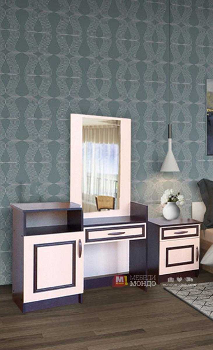 Тоалетки с огледало на ниски цени от онлайн мебели Мондо. Придаваща нежност с излъчването си, тя внася мекота в интериора. Практичните, компактни размери са идеални за малки пространства за спалня.