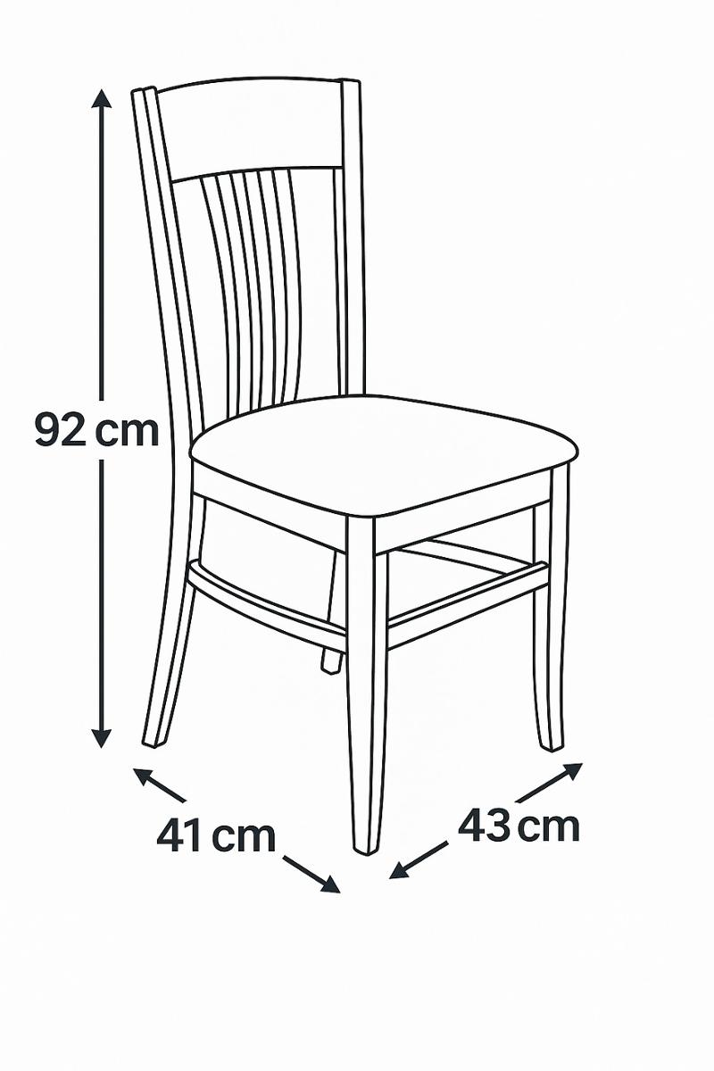 Столът е със здрава конструкция от естествена масивна дървесина за устойчивост и стабилност. Седалката е с твърда основа, тапицирана с дунапрен за повече комфорт при седене и завършен със здрава текстилна дамаска, лесна за поддръжка.